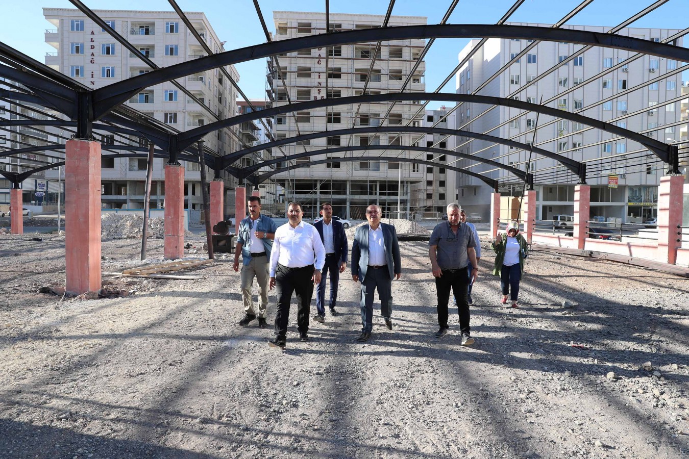 Başkan Mehmet Canpolat, Belediye Başkan Yardımcıları İhsan Ağcan ve Mehmet Aslan ile birlikte Karşıyaka Mahallesindeki kompleks alanında incelemelerde bulundu. Fen İşleri Müdürlüğü tarafından yürütülen inşaat çalışmalarını inceleyen Başkan Canpolat, beraberinde bulunan teknik ekipten de çalışmalara ilişkin bilgiler aldı. Mahallede birçok ihtiyacı aynı alanda karşılayacak olan kompleks alanında yürütülen çalışmaların titizlikle sürdürüldüğünü kaydeden Başkan Canpolat, 6 dönümlük alan üzerine kurulacak tesislerin en kısa sürede bitirilerek hizmete sunulacağını ifade etti. Karşıyaka Mahallesinde yapımı hızla devam eden ve toplam alanı 6 bin 320 metrekare olan komplekste; semt pazarı, spor tesisi ve tesis binası yer alacak. Tesis içerisinde lavabolar, giyinme odaları, duş alanları bulunurken, bunun yanı sıra zabıta ve muhtar odası da yer alacak.