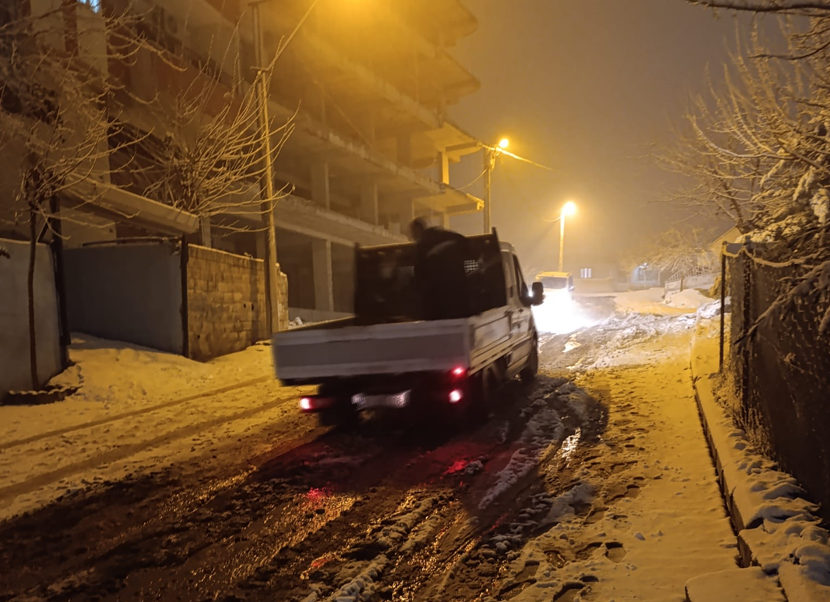 Ulaşımda aksamaların yaşanmaması için kar küreme çalışmalarının yanı sıra kumlama faaliyetleri de sürdürüldü. Gece boyunca devam eden çalışmalar, günün ilk ışıklarıyla birlikte aralıksız şekilde devam etti.