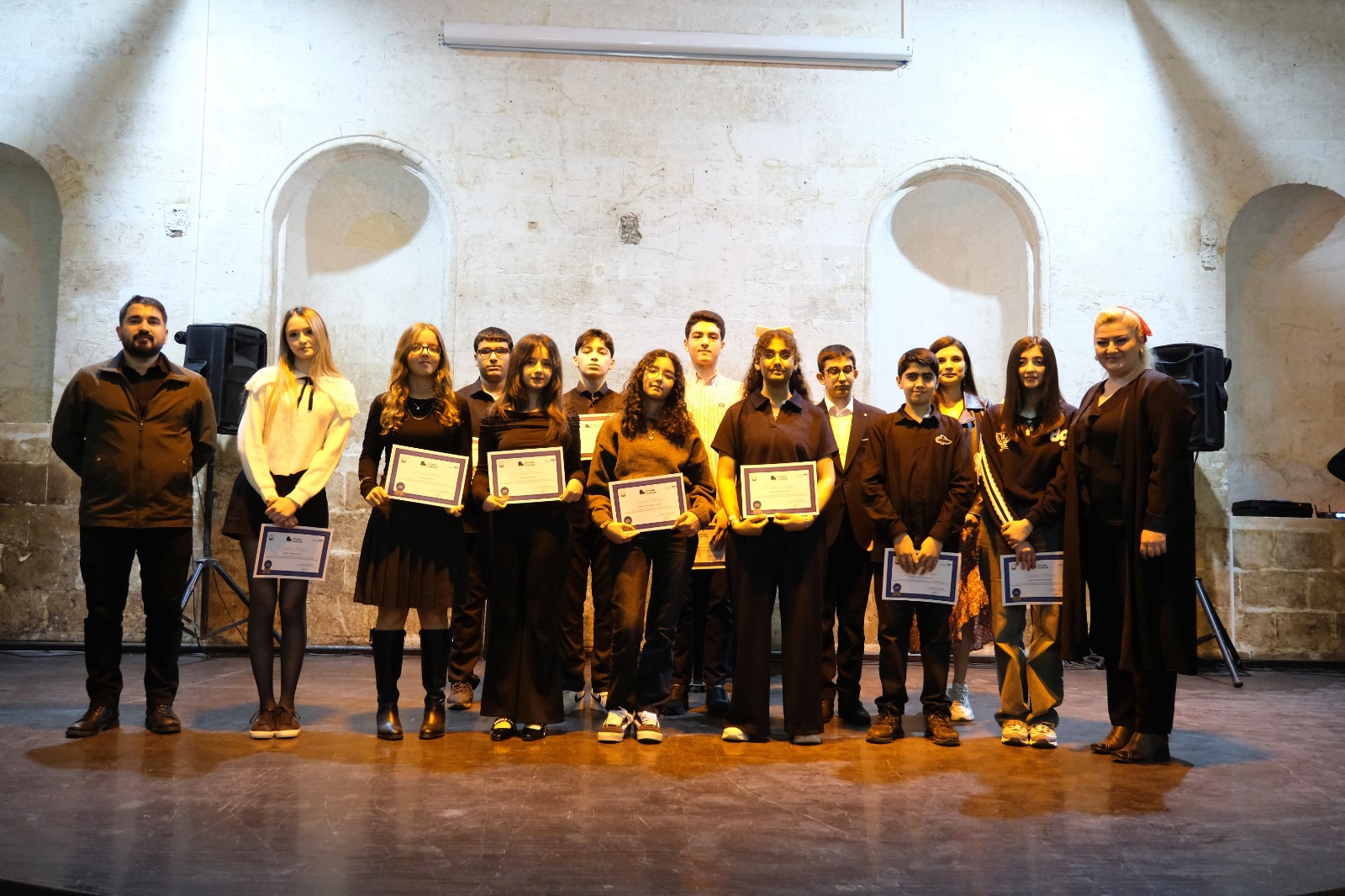 Programda Şanlıurfa Büyükşehir Belediyesi Genel Sekreteri Mithat Can Kutluca tarafından sahne alan öğrencilere teşekkür belgeleri takdim edildi
